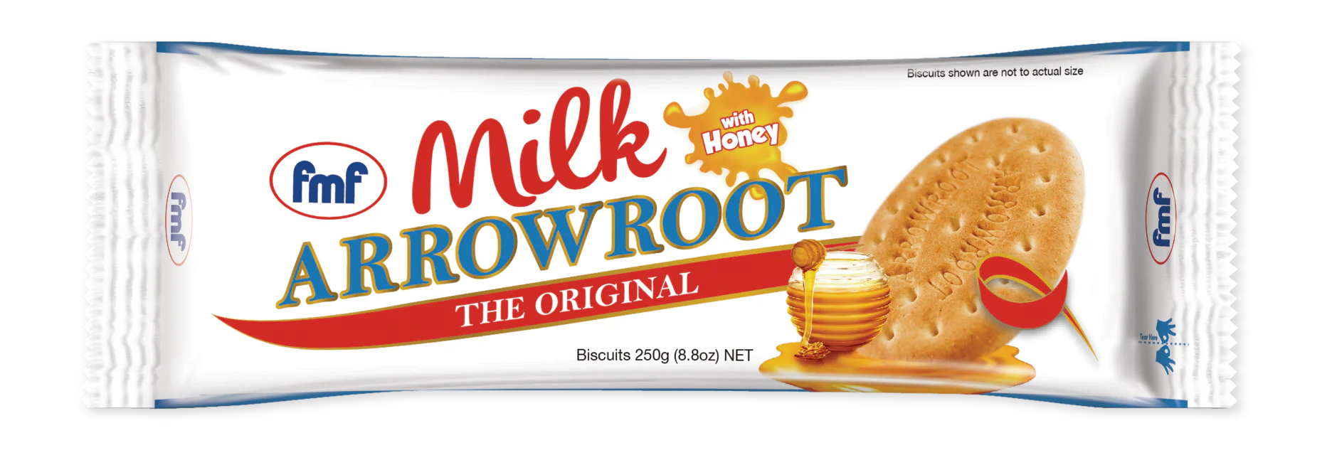 FMF Milk Arrowroot biscuits are a popular Fijian snack known for their light, crispy texture and subtle milk flavor. They are often enjoyed with tea or coffee and are a family favorite. The biscuits are available in a 250g pack and are also offered with a touch of honey for an added sweetness